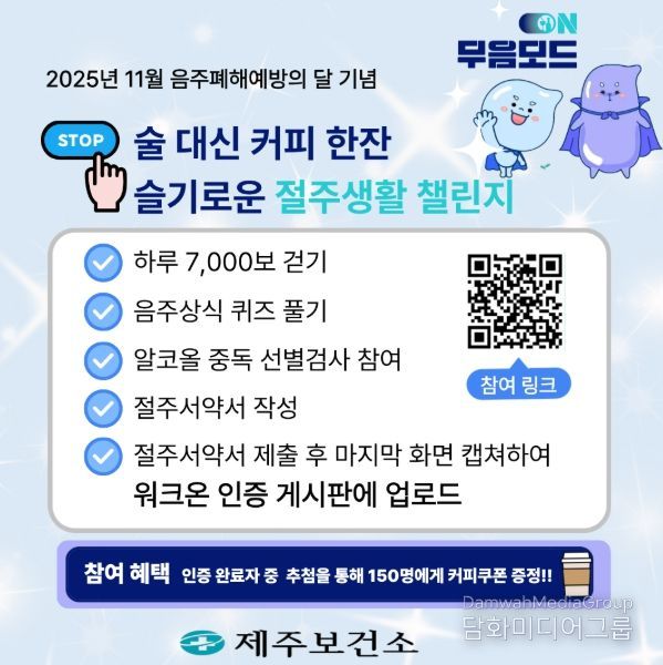 시민행정신문 기자 | 제주보건소는 ‘11월 음주폐해예방의 달’을 맞아 지역사회 절주의 중요성을 확산하고 건강한 음주문화를 조성하기 위해 비대면 참여형 캠페인 ‘슬기로운 절주생활 챌린지’를 운영한다.