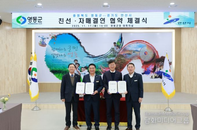 시민행정신문 강갑수 기자 | 17일 오후, 충청북도 영동군청에서 영동군과 경기도 안산시(시장 이민근) 간의 자매결연 협약 체결식이 진행됐다.
