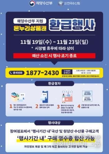 특히 김장철에는 젓갈류, 생선류 등 수산물 소비가 크게 늘어 가격 부담이 가중되는 시기인 만큼, 이번 환급행사가 시민들의 겨울철 식탁 준비에 실질적인 도움이 될 전망이다.