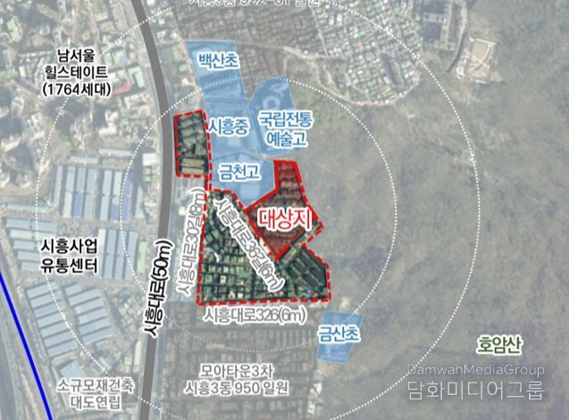 금천구 시흥3동 1005번지 일대는 7개동 규모로 공동주택 총 473세대(임대 95세대 포함)를 공급할 예정이다. 전체 세대수 20% 이상 임대주택 건설에 따른 용적률 완화로 사업성을 높였다. 노후 건축물이 밀집된 구릉지형으로 재개발이 어려웠던 이 지역은 이번 심의를 통과해 인접 모아주택(금천구 시흥동 943 일대)과 동시 개발이 가능하게 됐다.