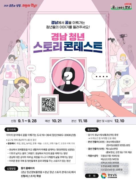 다음 달 1일부터 10일까지 경남청년정보플랫폼에서 ‘도민 참여단 투표’도 진행된다. 결선에 진출한 10명 중 경남을 대표하는 청년의 이야기를 잘 풀어낸 참가자 3명을 투표하면 추첨을 통해 1만 원 상당의 경남사랑상품권이 증정된다.