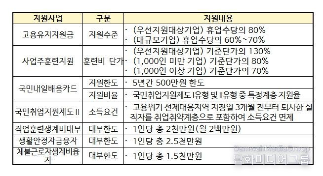 이번 결정으로 포항시와 서산시 내 재직자·실업자·자영업자는 국민내일배움카드의 지원 한도와 수강료 지원율, 직업훈련 생계비 대부의 한도가 모두 상향되고, 실업자는 소득 수준과 관계없이 국민취업지원제도에 참여할 수 있게 된다. 또한 사업주는 고용유지지원금과 사업주 직업능력개발 지원에서 지원율을 우대받게 된다.