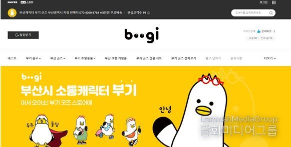 시민행정신문 이세훈 기자 | 부산시는 부산시 소통 캐릭터 '부기' 상품을 한곳에서 구매할 수 있는 네이버 스마트스토어 '부기타운'을 운영한다고 밝혔다.