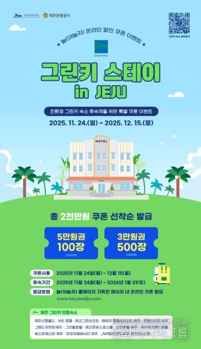 할인 대상은 제주지역 그린키 인증 숙소로 한정되며, 투숙 가능 기간은 2026년 1월 31일까지다.