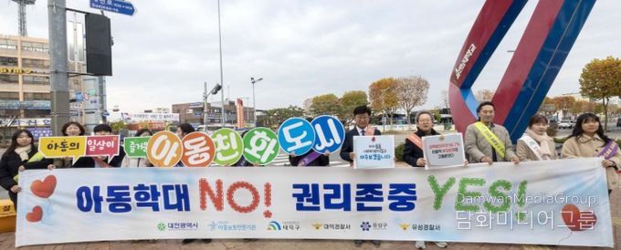 시민행정신문 강갑수 기자 | 대전 대덕구는 아동학대예방 주간(11월 19~25일)을 맞아 20일 한남오거리에서 대덕경찰서, 대전북부아동보호전문기관과 함께 아동학대 예방 캠페인을 실시했다.