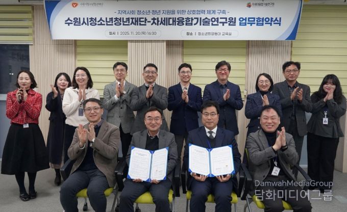 시민행정신문 강갑수 기자 | 수원시청소년청년재단(이사장 최종진)과 차세대융합기술연구원(원장 김연상)은 11월 20일, 청소년·청년의 미래 역량 강화와 성장 지원을 위한 업무협약(MOU)을 체결했다.