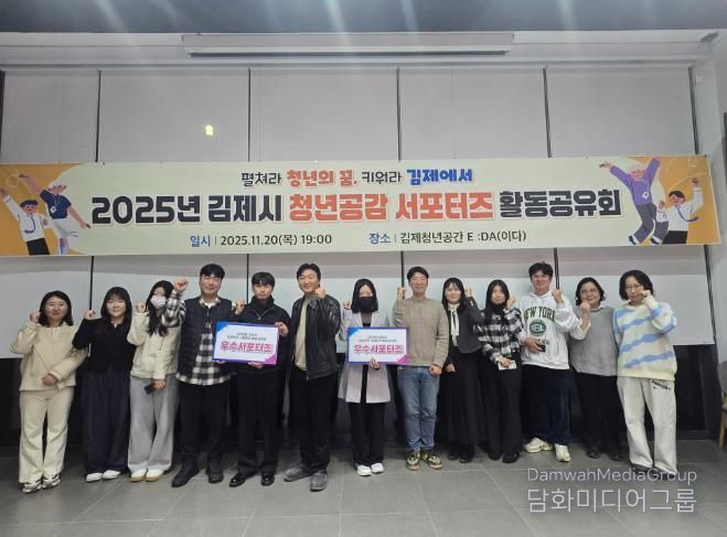 시민행정신문 강갑수 기자 | 김제시는 지난 20일, 김제 청년공간 E :DA(이다)에서'2025년 청년 서포터즈 활동공유회'를 개최하고, 올해 서포터즈가 추진한 정책 제안과 다양한 활동을 공유했다고 밝혔다.