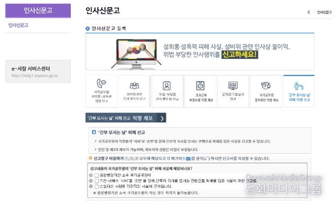 인사혁신처는 ‘간부 모시는 날’ 피해 익명 신고센터를 전자인사관리시스템(e-사람) 내 설치하고, 중앙행정기관 소속 공무원을 대상으로 피해 접수를 시작했다고 21일 밝혔다.