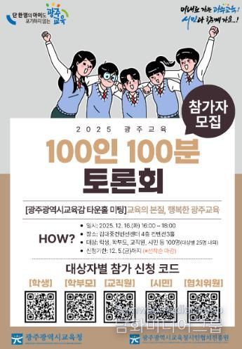 시민행정신문 기자 | 광주시교육청시민협치진흥원은 오는 12월 16일 김대중컨벤션센터 4층 컨벤션홀에서 ‘2025 광주교육 100인 100분 토론회’를 개최한다.