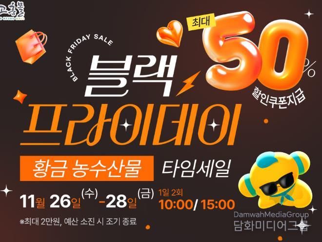 고흥몰 블랙프라이데이 타임세일은 11월 26부터 28일까지 단 3일간 진행되며, 자세한 할인 정보와 상품 구성은 고흥몰 홈페이지와 공식 사회관계망서비스(SNS)에서 확인할 수 있다.