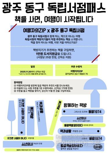 임택 동구청장은 “광주에서 가장 많은 독립서점을 품은 인문도시 동구에서 ‘독립서점패스’는 골목 상권과 문화를 잇는 중요한 매개체가 될 것”이라며, “앞으로도 지역의 소중한 문화 자원을 기반으로 한 복합문화 프로그램을 지속적으로 확대해 나가겠다”고 말했다.