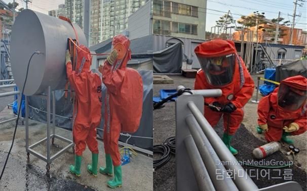 특히 실제 상황을 가정해 구조대원들이 화학사고 대응 장비를 직접 활용하여 누출 차단·제독·이송 절차를 반복 숙달하는 실전형 중심 훈련을 진행했다.