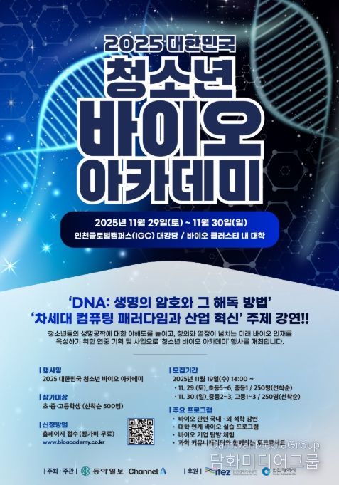 시민행정신문 이존영 기자 | 인천경제자유구역청은 29일부터 30일까지 양일간 대한민국의 바이오 분야 꿈나무들을 위한 ‘2025 대한민국 청소년 바이오 아카데미’를 개최한다고 밝혔다.