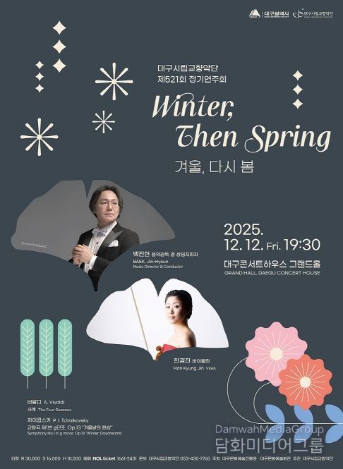 시민행정신문 강갑수 기자 | 대구시립교향악단은 12월 12일 오후 7시 30분, 대구콘서트하우스 그랜드홀에서 올해 마지막 정기 공연인 ‘제521회 정기연주회: 겨울, 다시 봄’을 개최한다.