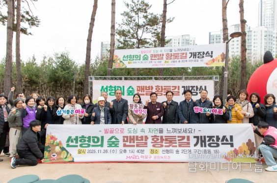 시민행정신문 강갑수 기자 | 박강수 마포구청장은 11월 26일 오후 1시 40분, 중동 18 일대 선형의 숲 2단계 구간에 조성된 ‘맨발 황톳길’ 개장식에 참석해 주민들과 함께 개장을 축하했다.