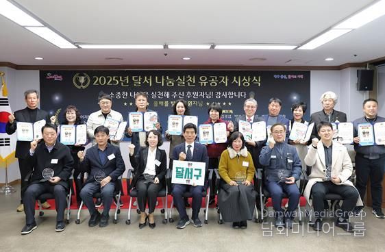 시민행정신문 강갑수 기자 | 대구 달서구는 지난 26일 달서구청에서 지역의 어려운 이웃을 위해 꾸준한 나눔을 실천해 온 기업·단체 및 개인 유공자들에게 감사의 뜻을 전하는 ‘2025년 나눔실천 유공자 시상식’을 개최했다.