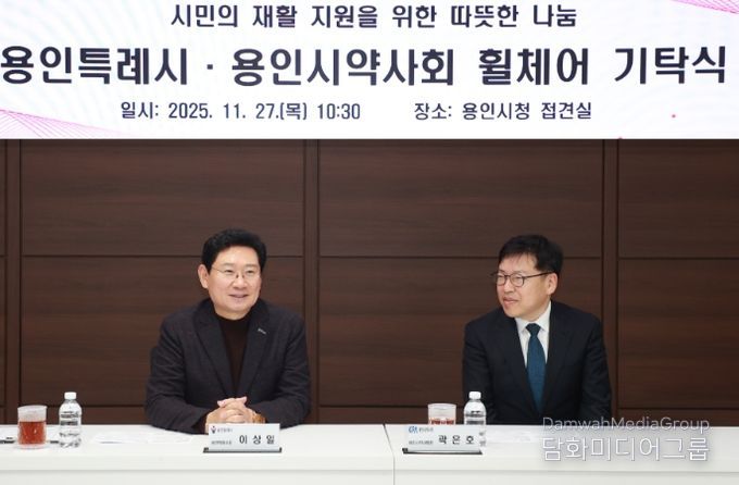 27일 시청 접견실에서 열린 기탁식에는 이상일 용인특례시장과 곽은호 용인시약사회장을 비롯해 양 기관 관계자들이 참석해 지역내 이동약자를 위한 복지에 위해 힘을 모으기로 했다.