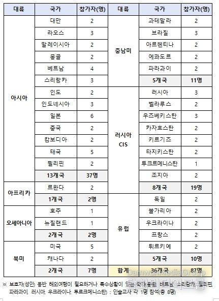 ‘해외 청소년 한국어교육 연수’는 각국의 정규 학교에서 한국어를 배우는 학생들이 한국에 대한 이해를 넓히고 한국어 학습 동기를 고취할 수 있도록 2019년부터 매년 운영되는 과정이다. 올해는 르완다·벨라루스·튀르키예 등 처음 참여하는 국가들을 포함해 총 36개국에서 인솔교사 포함 95명이 참석했다.