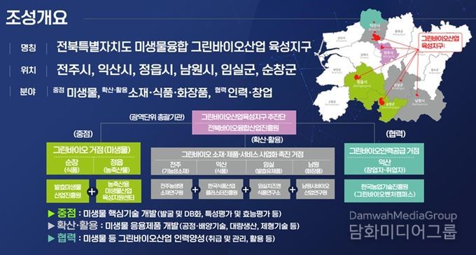 1일 도에 따르면, 이번 공모 사업은 농림축산식품부가 미생물, 식물, 곤충 등 생물자원을 활용한 그린바이오 산업의 국가 경쟁력 강화하고자, 연구개발부터 생산, 사업화까지 통합적 생태계를 갖춘 지역을 선정해 집중 육성하는 국가 전략사업이다. 전북은 미생물 기반 연구 역량과 기업 인프라, 산업화 경험을 종합적인 국가 전략체계로 인정받았다.