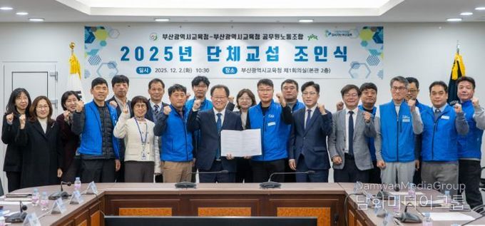 시민행정신문 기자 | 부산광역시교육청과 부산광역시교육청공무원노동조합은 2일 오전 교육청 회의실에서 단체협약을 체결했다.