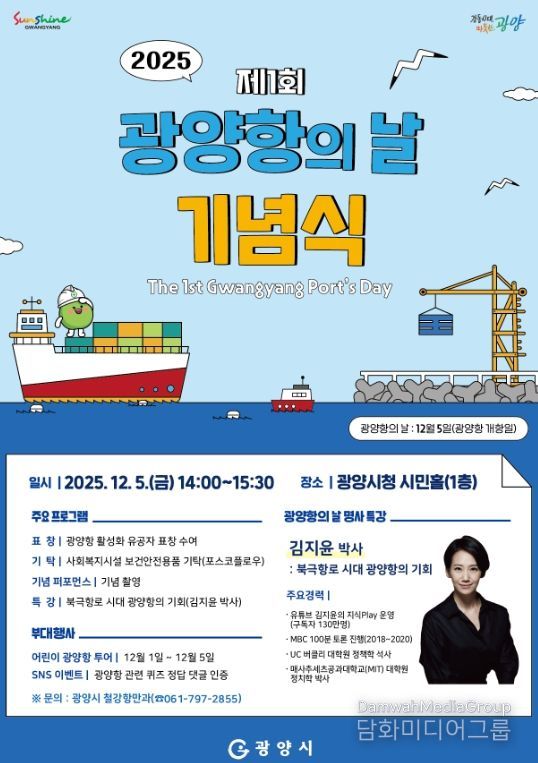 정승재 철강항만과장은 "올해 처음으로 열리는 '광양항의 날 기념식'은 광양항의 산업적‧경제적 위상을 공유하고 지역 사회와의 상생 협력을 굳건히 하는 의미가 있다"며 "포스코플로우와 같이 광양을 대표하는 기업이 지속적으로 사회공헌 사업을 이어가고 있는 데 깊히 감사드린다“고 혔다.