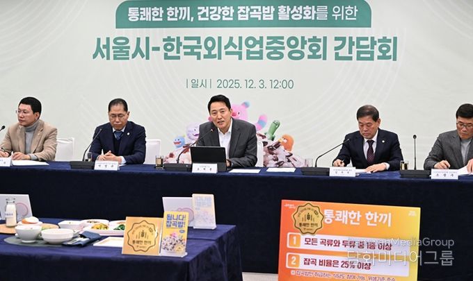 시민행정신문 강갑수 기자 | 오세훈 서울시장은 3일 오후 12시, 서울시청 간담회장에서 (사)한국외식업중앙회(서울시협의회) 지회장들을 만나, 외식이나 배달시에도 흰쌀밥 대신 통곡물 잡곡밥을 선택할 수 있는 ‘통쾌한 한끼’ 참여 음식점 확대를 위한 협력 방안을 모색했다.