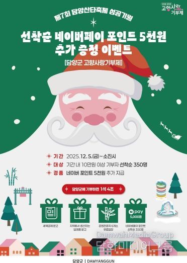 시민행정신문 강갑수 기자 | 담양군이 연말을 맞아 5일부터 ‘고향사랑기부제 네이버페이 포인트 증정 이벤트’를 진행한다.