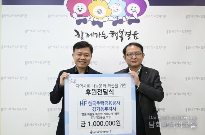 시민행정신문 강갑수 기자 | 지구촌사회복지재단에서 운영하고 있는 용인시수지노인복지관은 지난 2일, 한국주택금융공사 경기동부지사(지사장 전경환)와 함께 후원전달식을 진행했다.