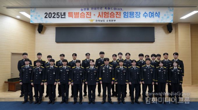 시민행정신문 강갑수 기자 | 전남소방본부(본부장 주영국)는 12월 5일 전남소방학교 인재관 대강당에서 특별승진 및 시험승진에 대한 임명장 수여식을 개최했다.