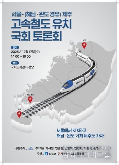 시민행정신문 강갑수 기자 | 해남군은 오늘 17일 국회도서관 대강당에서 해남과 완도를 경유해 제주까지 연결되는‘서울~(해남·완도 경유) 제주 고속철도 유치 국회토론회’를 개최한다.