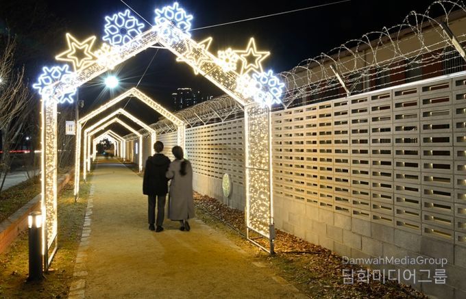 산책로를 따라 펼쳐진 크리스마스 경관은 입구부터 눈을 사로잡는다. 가로수 장식과 함께 서 있는 8m 대형 크리스마스 트리와 나무 조명길이 방문객을 맞이하며, 그 안쪽으로는 눈꽃송이 산책로, 빛터널, 스노우폴 산책로 등 겨울의 정수를 느낄 수 있는 다채로운 공간들이 이어진다. 마치 동화 속 한 장면처럼, 방문객들은 각기 다른 테마로 꾸며진 길을 따라 걷는 동안 마법 같은 겨울을 체험하게 된다.