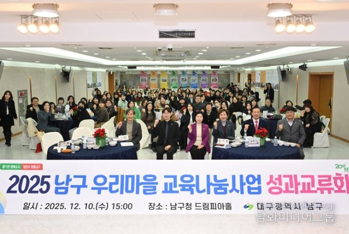 시민행정신문 강갑수 기자 | 대구 남구는 지난 12월 10일, 구청 드림피아홀에서 동별 추진위원과 청소년 등 100여 명이 참석한 가운데 ‘2025년 남구 우리마을 교육나눔사업 성과교류회’를 개최했다.