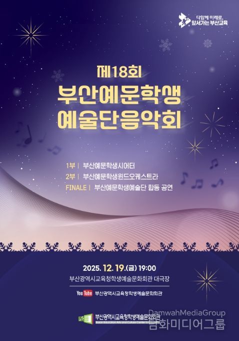 박은혜 학생예술문화회관장은 “부산예문학생예술단은 예술을 통해 서로 배우고 성장하며 꾸준히 실력을 키워왔다”며 “단원들의 열정과 노력이 담긴 이번 무대가 관객들에게 따뜻한 울림과 위로를 전하는 시간이 되길 바란다”고 말했다.