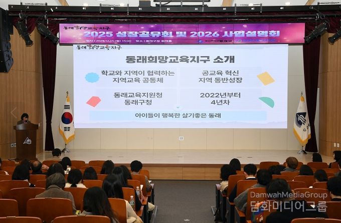 시민행정신문 강갑수 기자 | 부산 동래구는 지난 15일 동래구청 동래홀에서 동래교육지원청과 함께 ‘2025년 성장공유회 및 2026년 사업설명회’를 성황리에 개최했다고 밝혔다.