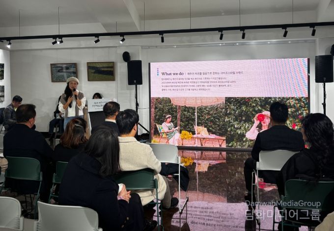 1부 행사에서는 컬러랩제주 김명은 대표가 강연자로 나서 마을의 자연과 일상에 담긴 색을 활용한 마을 정체성 스토리텔링 기법에 대해 특강을 진행했다.
