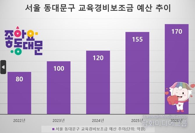 시민행정신문 이세훈 기자 | 서울 동대문구가 내년도 교육경비보조금을 170억 원으로 확정했다. 올해보다 15억 원(9.7%) 늘린 규모다. 구는 이번 증액을 ‘공교육 정상화’의 핵심 투자로 규정하고, 학력 신장과 미래형 수업, 교권 보호, 취약 학생 지원을 동시에 강화하겠다고 밝혔다.