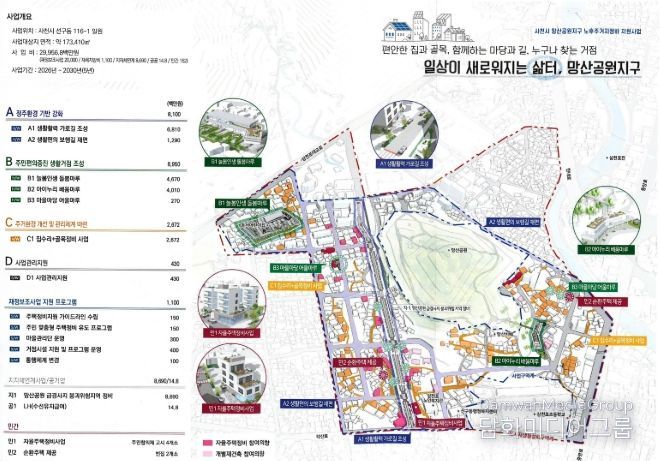 이번 사업을 통해 망산공원지구에는 정주환경 기반 강화, 주민현의증진 생활거점 조성, 주거환경 개선 및 관리체계 마련, 사업관리 지원 등 4가지 주요사업이 실시될 예정이다.