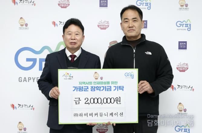 시민행정신문 강갑수 기자 | ㈜하비비커뮤니케이션 강동구 대표는 지난 17일 가평군청을 방문해 가평군 교육발전을 위한 장학금 200만 원을 전달했다.