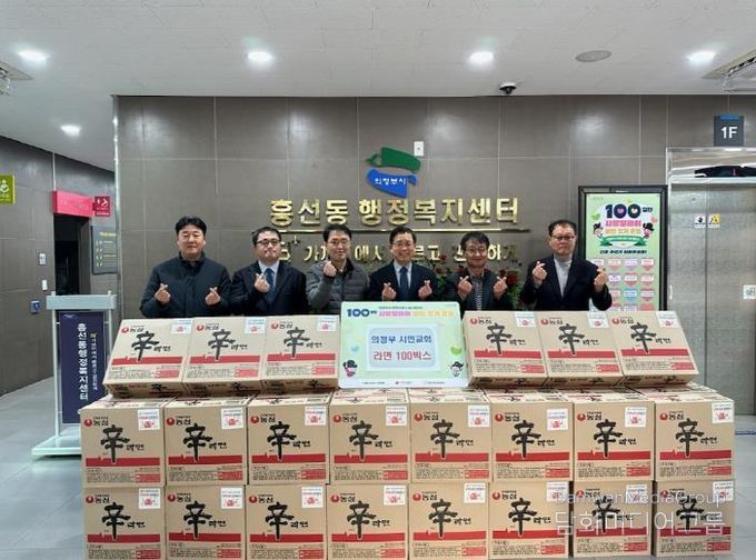 시민행정신문 강갑수 기자 | 의정부시 흥선동행정복지센터는 12월 18일 의정부시민교회가 ‘100일간 사랑릴레이 배턴 잇기’에 동참해 라면 100상자를 기탁했다고 밝혔다.