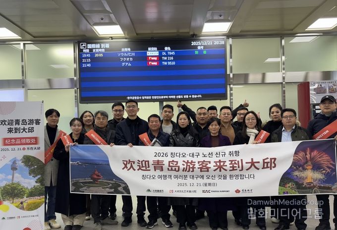 시민행정신문 강갑수 기자 | 대구광역시와 대구문화예술진흥원 관광본부는 대구국제공항에서 ‘칭다오-대구’ 신규 노선 취항을 맞아 중국인 관광객을 위한 환영 행사를 마련하고 본격적인 맞이에 돌입했다.