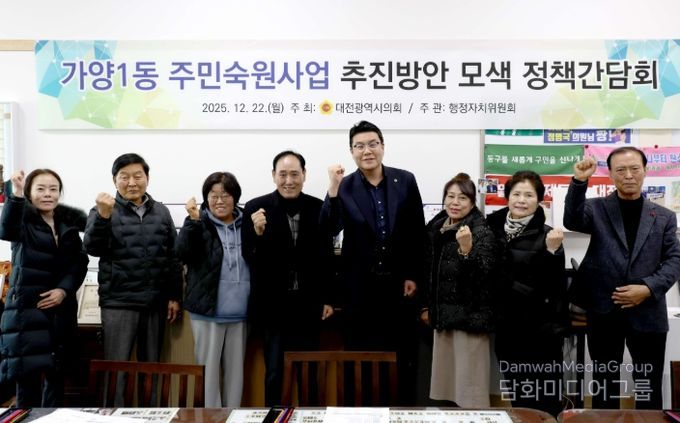 시민행정신문 기자 | 대전시의회 행정자치위원회는 정명국 의원(국민의힘, 동구 3) 주재로, 22일 행정자치위원장실에서 가양1동 주민숙원사업 추진방안 모색을 위한 정책간담회를 개최했다.