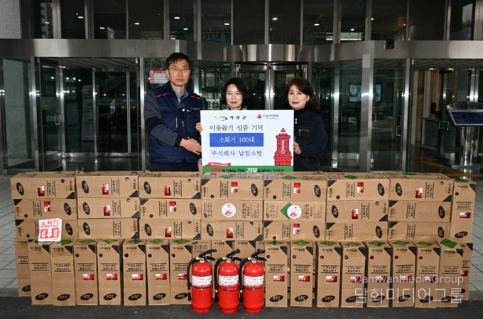 이에 기장군 관계자는 “기장군 동절기 화재 예방을 위한 뜻깊은 나눔에 깊이 감사드린다”라며, “기탁해주신 소화기는 화재에 취약한 가정과 도움이 필요한 이웃들에게 소중히 전달해 안전한 생활환경 조성에 활용하겠다”라고 말했다.