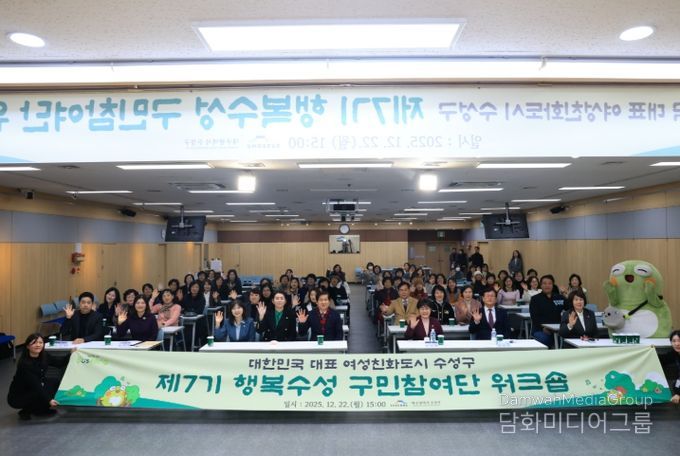 이번 워크숍은 여성 친화 정책에 대한 구민의 이해를 높이고, 행복수성 구민참여단의 2025년 활동 성과를 공유하는 한편 향후 정책 발굴 역량을 강화하기 위해 마련됐다.
