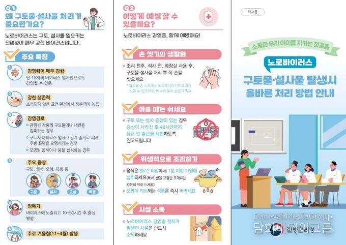 노로바이러스는 겨울철에 주로 유행하는 급성 위장관 감염증으로, 감염 시 구토, 설사, 복통 등의 증상이 나타나며 전염력이 매우 강해 집단 발생으로 이어질 가능성이 높다.