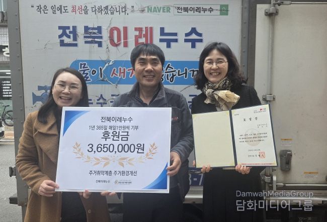 양인수 전북이레누수 대표는 “현장에서 주택 보수 작업을 하다 보면 작은 누수가 누군가에게는 생활을 위협하는 큰 불편이 되는 것을 자주 목격한다”면서 “지역에서 사업을 운영하며 받은 사랑을 우리 이웃의 주거 안정을 위해 되돌려줄 수 있어 기쁘며, 앞으로도 지속적인 나눔을 실천하겠다”고 소감을 밝혔다.