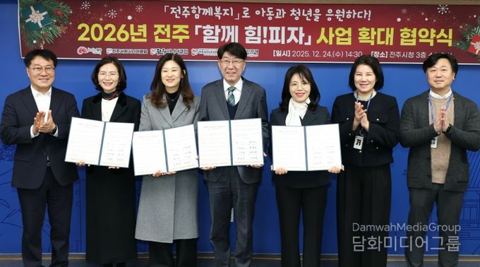 시와 전주시시니어클럽연합회는 24일 전주시장실에서 우범기 전주시장과 서원·전주·효자시니어클럽 등 3개 수행기관 관장이 참석한 가운데, ‘전주함께복지’ 시리즈의 일환인 ‘전주 함께힘!피자’ 확대 협약을 체결했다.