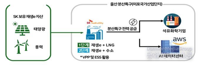 지역 발전사인 에스케이 엠유(SK MU)가 전력 직접거래를 통해 울산 미포국가산업단지 내 에스케이(SK)-아마존 데이터센터, 석유화학 기업 등에 저가 전력을 공급할 계획이다. 정부의 재생에너지 정책 기조에 맞춰 단계적으로 재생에너지와 친환경(그린)수소 기반의 무탄소 전력 공급도 확대할 방침이다.
