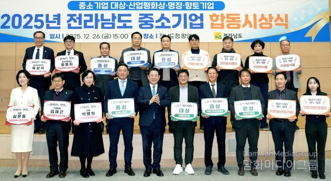 시민행정신문 강갑수 기자 | 전라남도는 26일 중소기업의 성장과 산업현장 숙련기술인의 공로를 기리기 위해 ‘2025 중소기업 합동 시상식’을 열고 기업경영·노사화합·숙련기술 등 각 분야에서 우수한 성과를 거둔 기업과 개인을 시상했다.