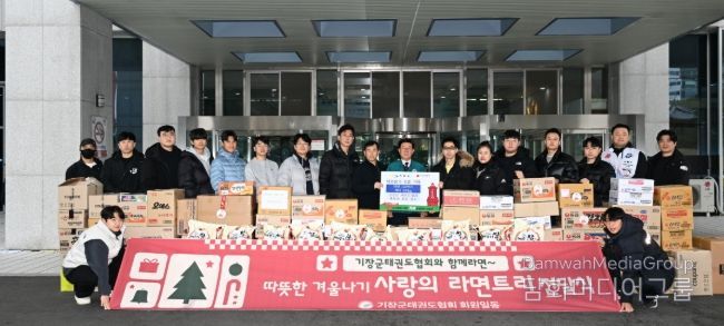 이날 기탁된 성품 중 라면은 기장군 태권도협회와 협회 소속 체육관(강한·독수리·문창·칠보·야무진·라온·행복한·한얼·신정·월내·앰케이비·영웅·어울림·한솔·해빛·아이원·윤빛·온리원) 18개소 회원들이 십시일반 뜻을 모아 마련한 것이다. 이에 기장군 태권도협회가 백미 200kg를 추가로 기탁하면서, 연말연시 이웃사랑 실천에 따뜻한 마음을 더했다.
