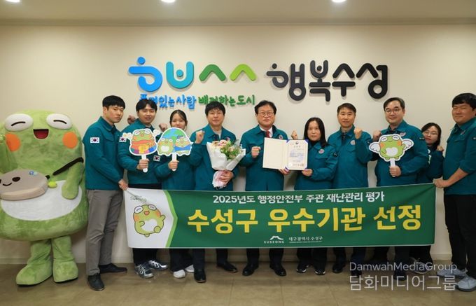 이번 평가에서 수성구는 전국 340개 재난관리책임기관 가운데 우수등급을 받아 지자체 우수기관으로 선정됐으며, 이에 따라 행정안전부 장관상을 수상하고 특별교부세 등 각종 인센티브를 받게 됐다.